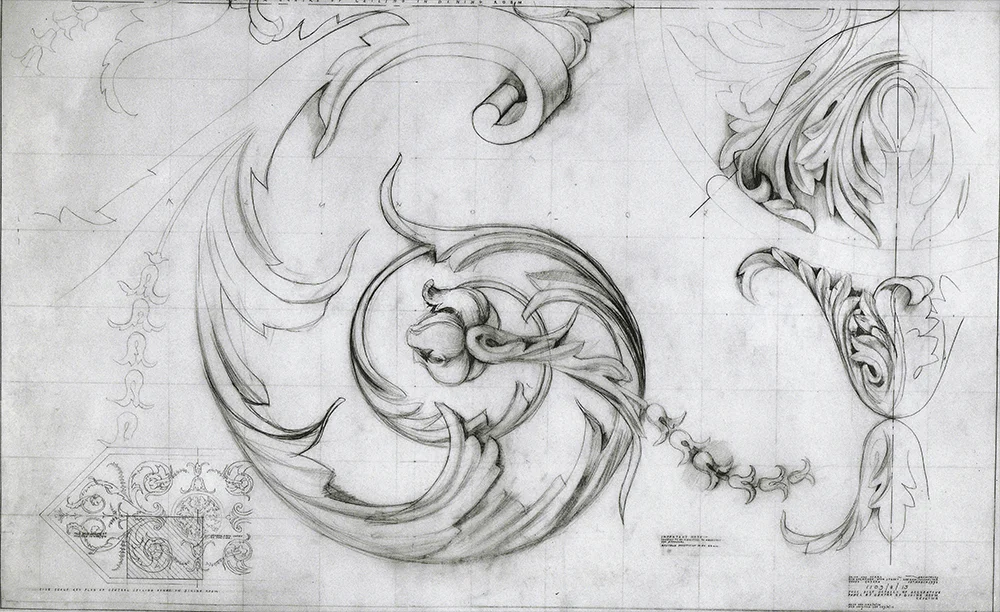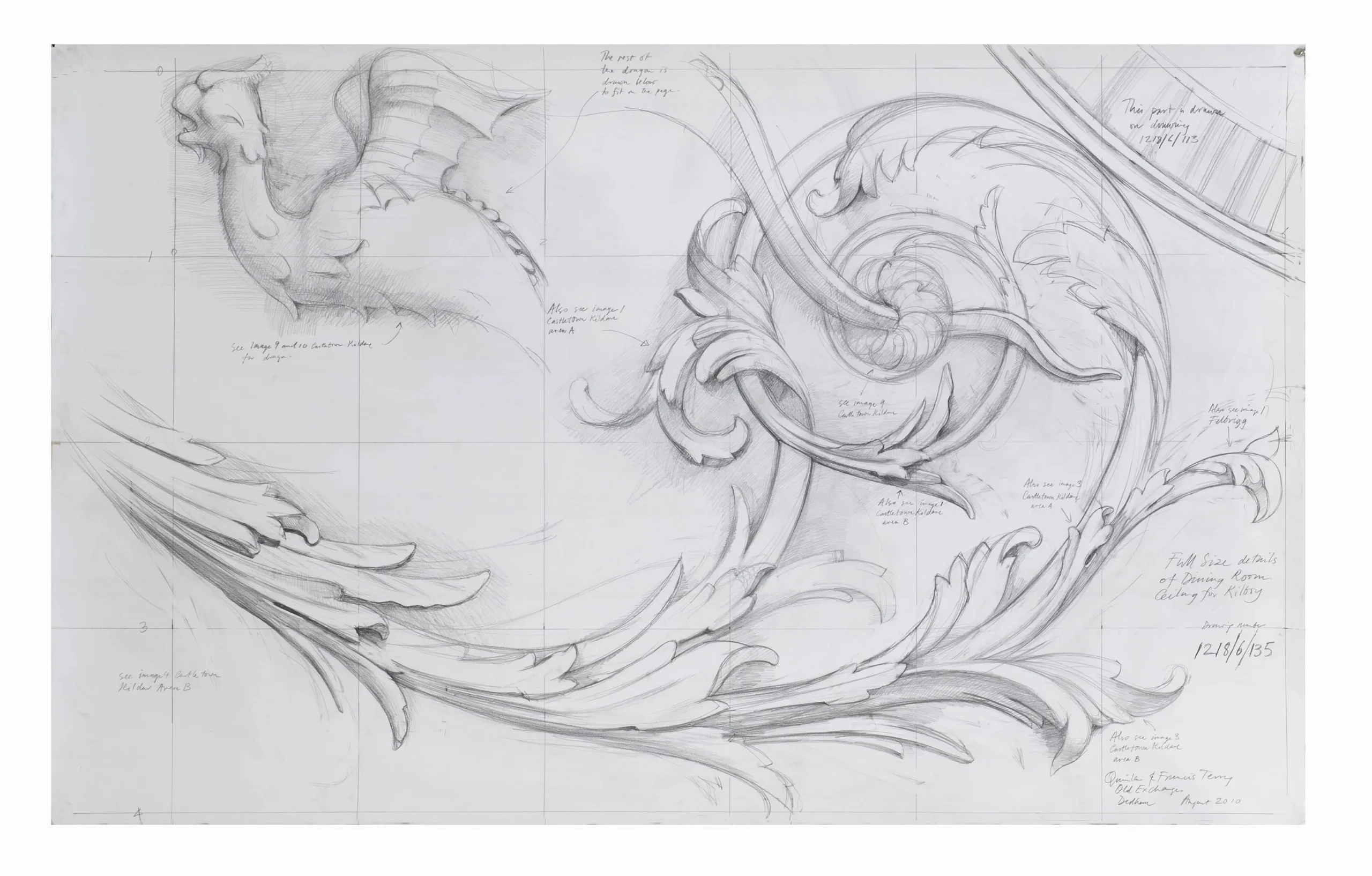 Full size ceiling decoration for Kilboy. Drawn by Francis Terry. Pencil on paper, 2010.