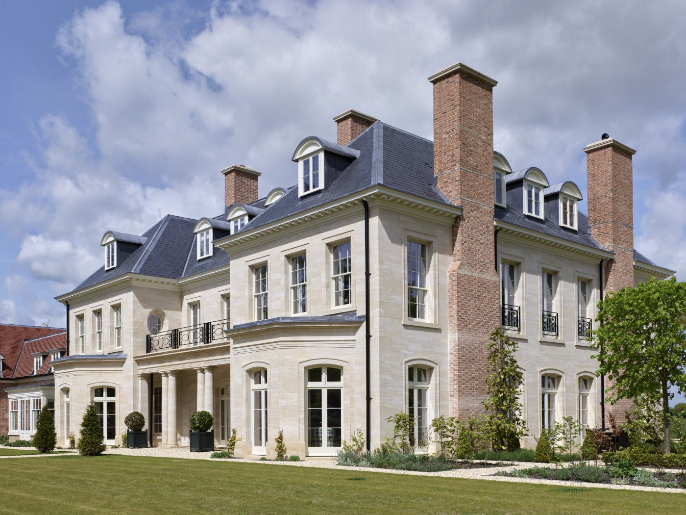 That Wield Park sits comfortably into its setting is partly the result of the overall shape of the house and its building materials. Wield Park’s service wing and lower buildings to the west are built of traditional Hampshire red brick, with clay tile roofs. By contrast, the main house is constructed from pale but warm Yorkshire limestone, from quarries operated by Cadeby Stone, which Mr Terry regards as a highly versatile stone for building. This manages to echo the local clunch-building tradition in a more durable form and references the grander Hampshire houses of the later 17th century, such as Wolvesey Palace in Winchester. Traditional grey slate has been used for the main roofs, which are punctuated by dormers with segmental pediments.