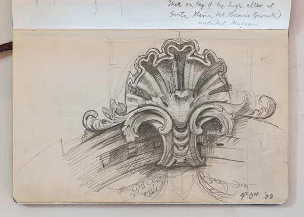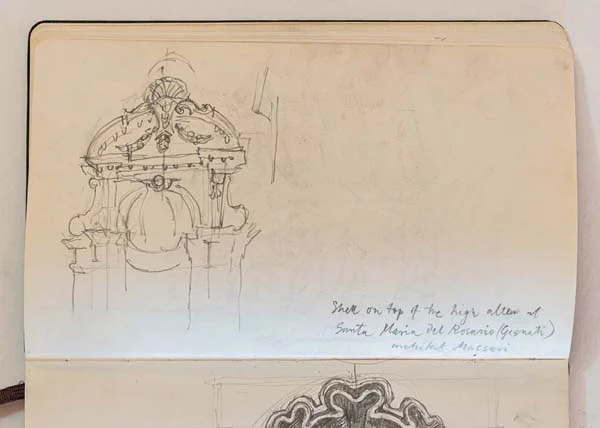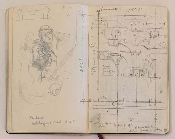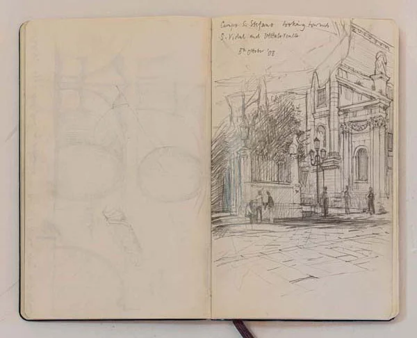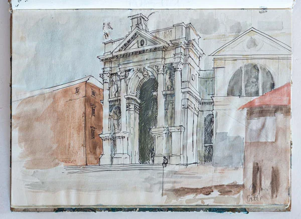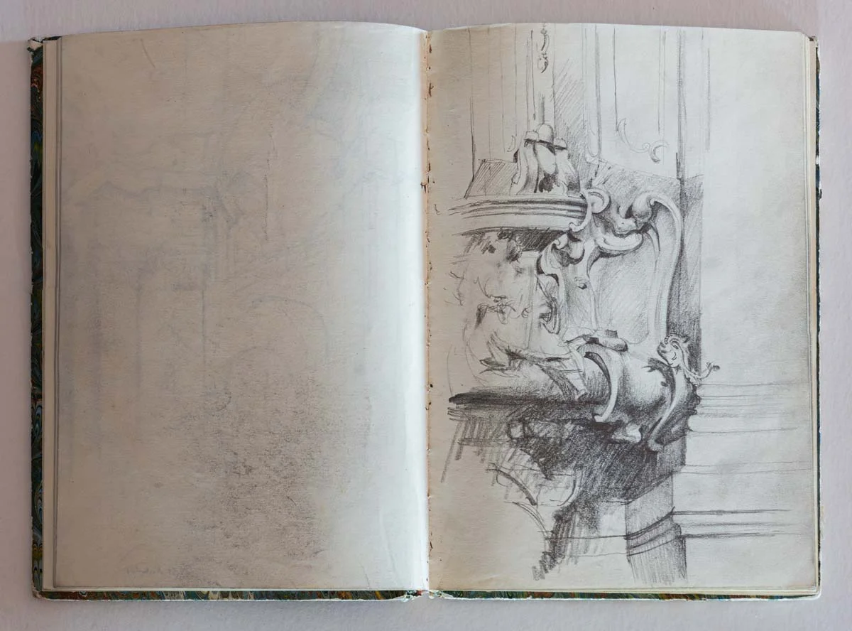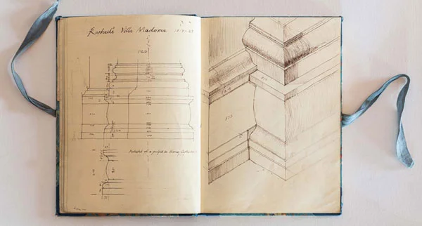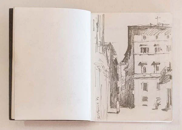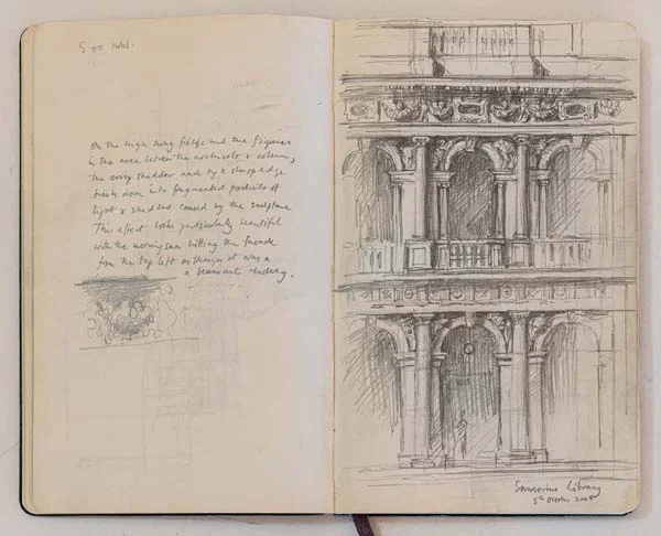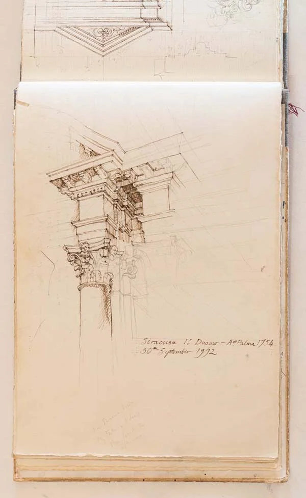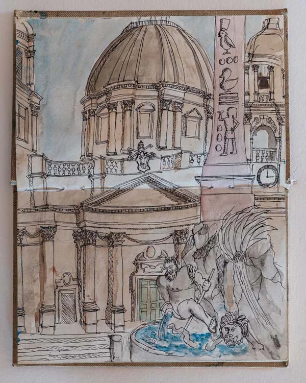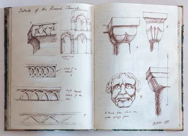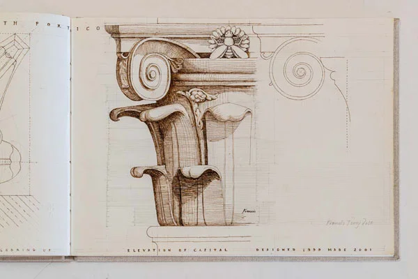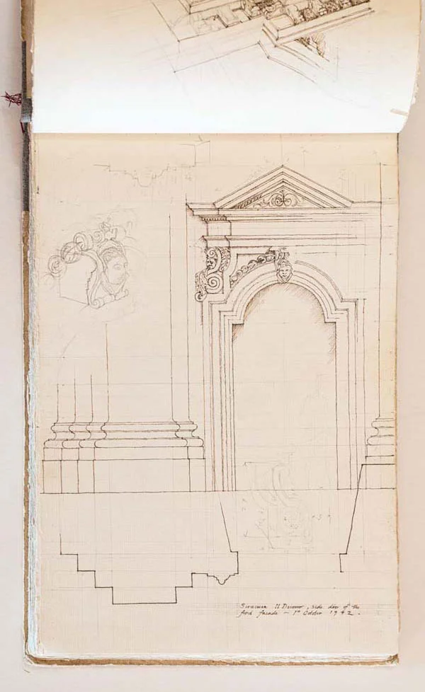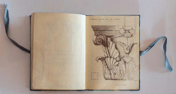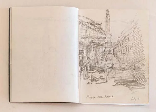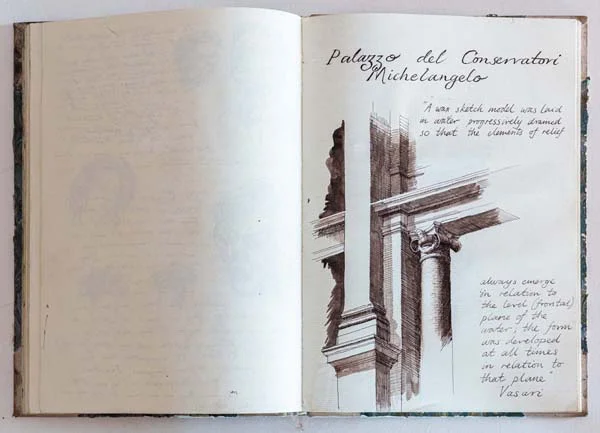 Sketchbooks have always been a critical part of an architect’s work. Francis Terry has a collection of sketchbooks going back forty years to his childhood holidays in Italy sketching architecture with his father, Quinlan Terry. Over the decades he has used sketchbooks as a source of inspiration for his architecture and other artistic ventures ranging from paintings to book illustrations and stage set designs.