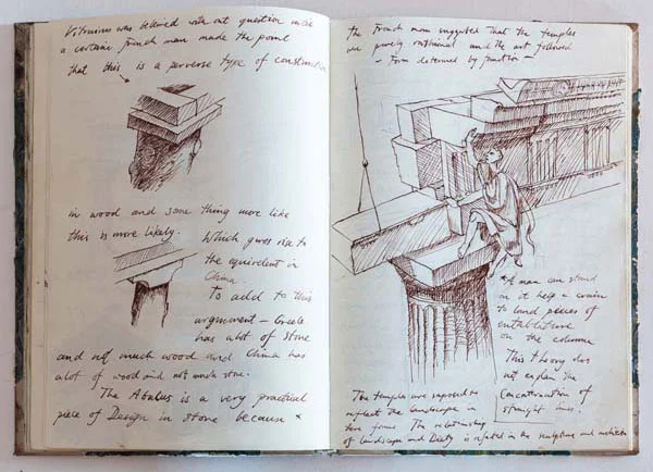Later in this book there are pen and ink lecture notes from my first year at Cambridge. I must have written these before I had made any friends and happily this swottyness was soon abandoned. Despite the acres of hours wasted studying architecture, our first-year lecture course was excellent and gave me a basic knowledge of the whole history of European architecture.