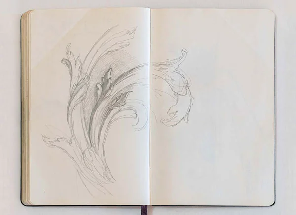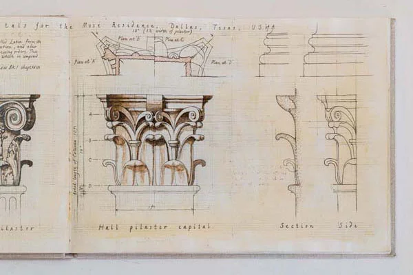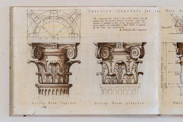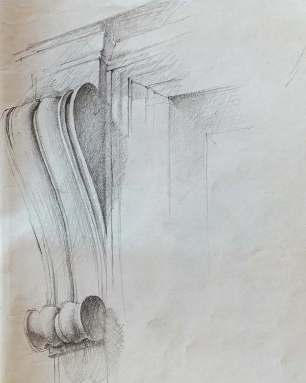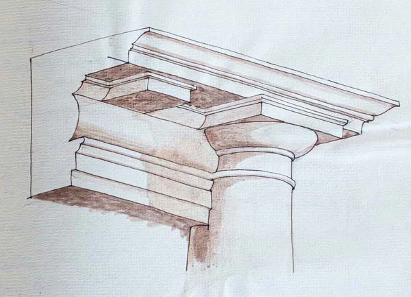 In the early 2000’s I had a sketch book in which I wanted to record the more memorable details I had worked on over the years. These included capitals, ornate ceilings, fireplaces and so on. I made a start but like most big plans that are not essential, they start well but never get finished.