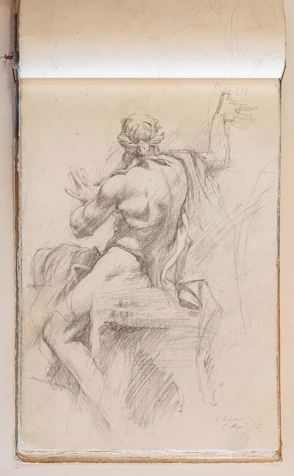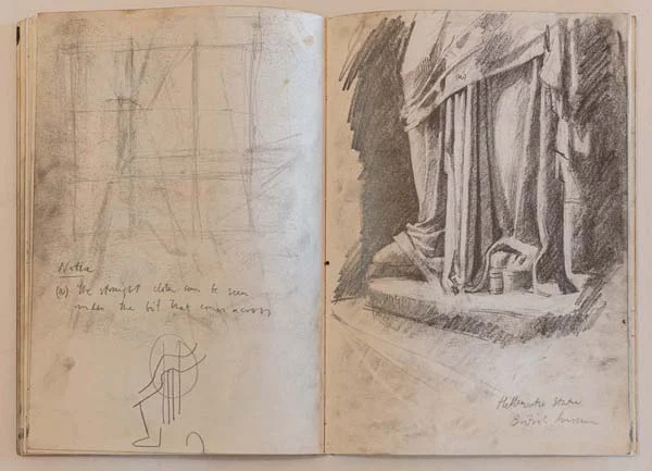Despite all the drawbacks of sketch books, they do have a compelling allure which is hard to underestimate. There is nothing quite like tactile sensation of leafing through an artist’s sketch book. Paintings in an exhibition can be enjoyed by many people at the same time, but with a sketch book, you, and only you, have the intimate pleasure of hearing the machinery of an artist’s mind whirring away from the comfort of an arm chair. And when the book is shut the music stops, until someone else opens it and the magic starts all over again.