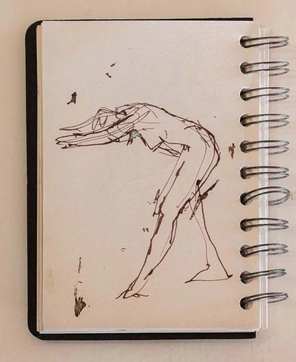 Since then I have come to feel that the whole notion of a spontaneous sketch book is a bit fake. Inspiration does not generally take you when you have your sketch book and art materials at hand – like taking a dog for a walk in a town and forgetting to bring poo bags – you never know when the clogs will start turning. Inspiration happens unpredictability and the cliched ‘back of a fag packet’ is a more likely place for an inspired sketch to be wrought.