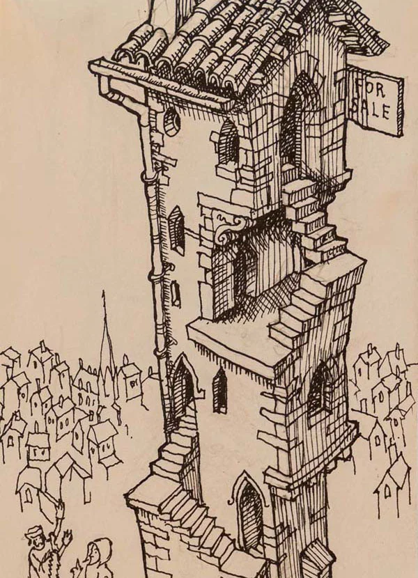 – there are also sketches of early ideas, including the staircase.