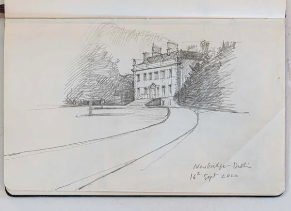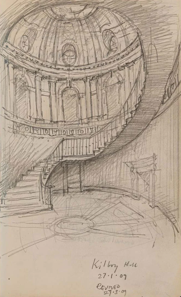 Another problem with sketch books is they can also be easily lost, and it is so much worse losing a whole collection than a single drawing. In a sketch book which had a space marked out in the front for a name and address which I dutifully filled in, there was a further line that said ‘reward if lost’ and a figure with a ‘£’ sign next to it. To avoid friends and colleagues hiding the sketch book and then demanding the ransom, instead of writing a figure I pompously wrote ‘the satisfaction of doing the right thing’. As fate would have it, I did actually leave this sketch book on a train and proving my suspicion that most people are essentially good, I was contacted by a kind stranger a few days later who sent my book back and only wanted to be reimbursed for the postage. That was fortunate, but I did lose one sketch book on a country house tour in Derbyshire which I never found again.