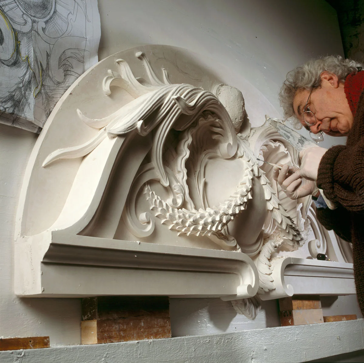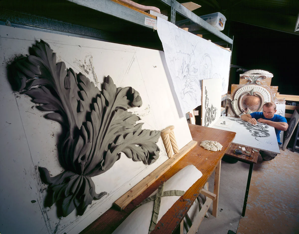 To have a successful collaboration with a craftsman, like with a builder, you need to know what to draw and equally important, what not to draw. For example, when working on full size drawings of classical ornament we often adapt our details to suit the material in which the object is to be made. For example, if it is to be cast, we think how the mould can be removed and if carved we think about how the mason will be able to get his chisel in for undercutting. I have recently discovered that this is not a good way of working, and again collaboration holds the key. It is much better to design exactly the form you want, meet with the craftsman and discuss how this can be achieved. If your detail is impossible to make, compromise then and not before. Conversely you will find that some part you thought was very hard to make is in fact very easy.