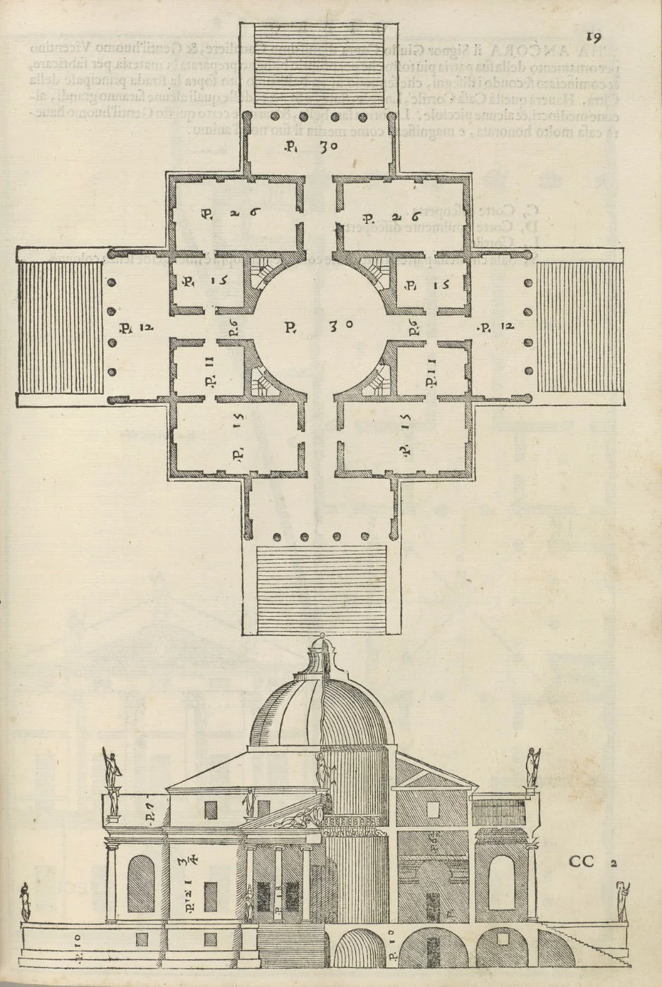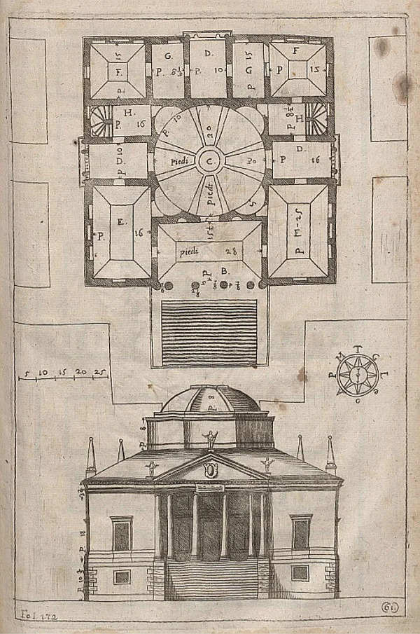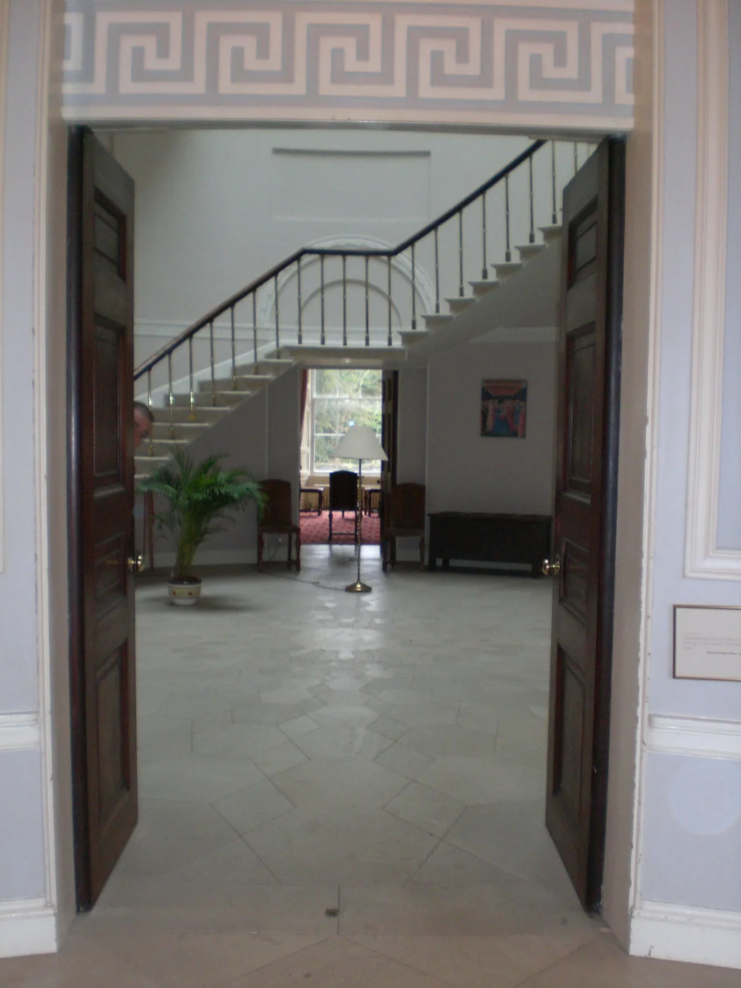 The ‘noughts and crosses’ plan has a long history going back to Palladio’s Villa Rotunda and the slightly later Villa Rocca Pisana by Scamozzi. Two centuries later this basic building type became a staple of Georgian architecture, being the inspiration behind houses like Chiswick House and Mereworth Castle. It was the Georgians who came up with the next innovation of putting a staircase in the central hall, which was done by a number of architects, most famously by James Paine at New Wardour Castle in Wiltshire.