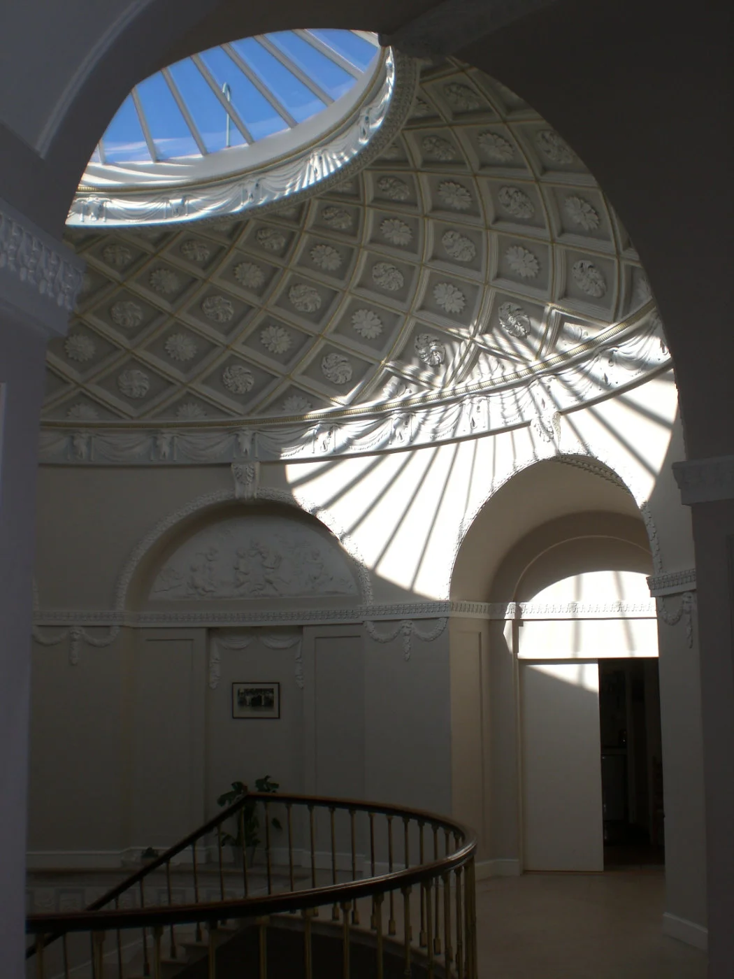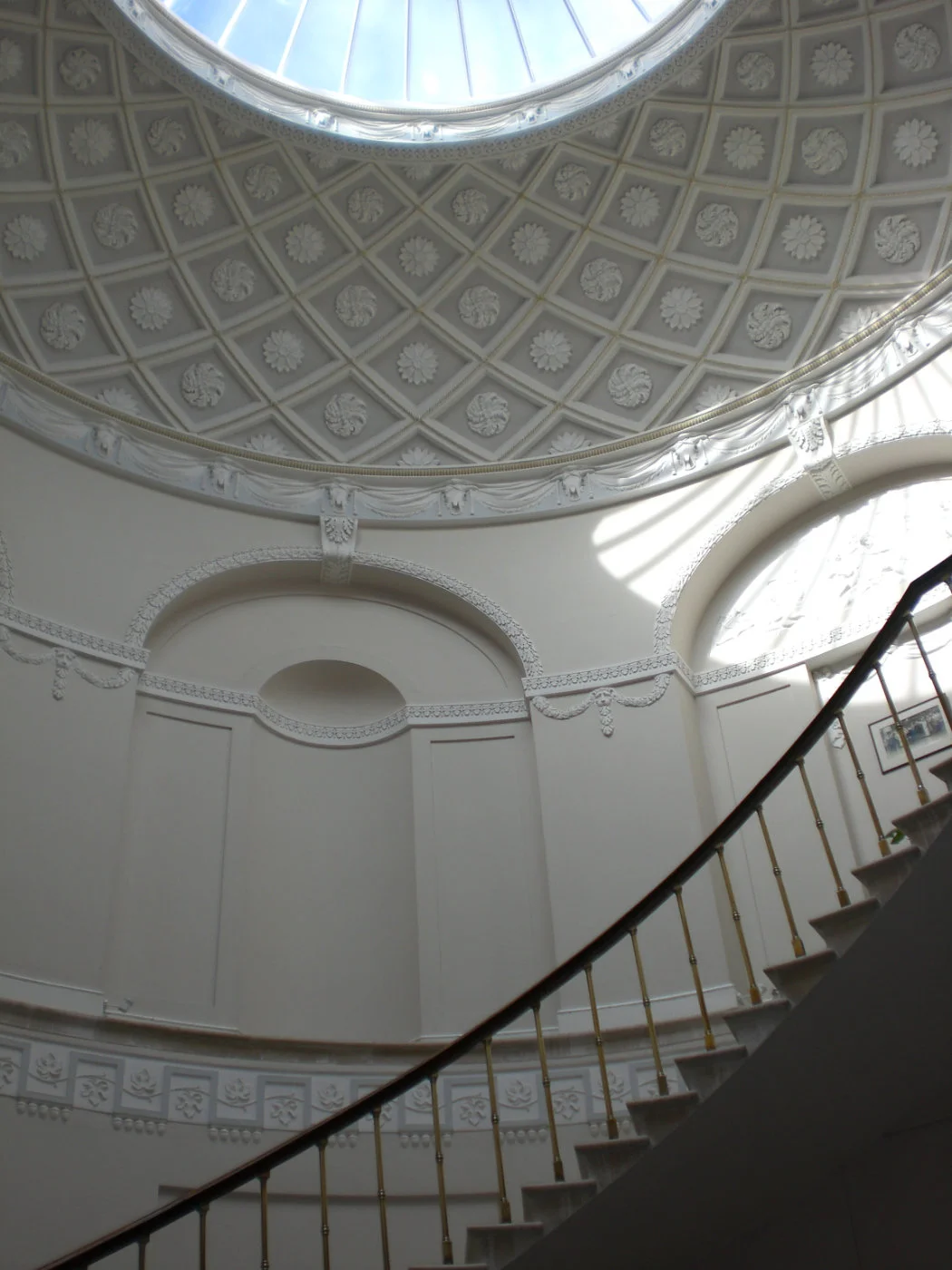 The rooms that surround the rotunda continue the serene simplicity of the elevations and have varying lengths, but all are 24ft in width. There is some ornament on the ceilings and fireplaces, but this like elsewhere in the house is incredibly light and delicate. When I saw the house, these rooms were painted in a variety of colours, some quite bright and filled with the paraphernalia of its educational function. I would love to see what these rooms would look like painted in carefully chosen shades of off white and sparsely populated with Georgian furniture.
