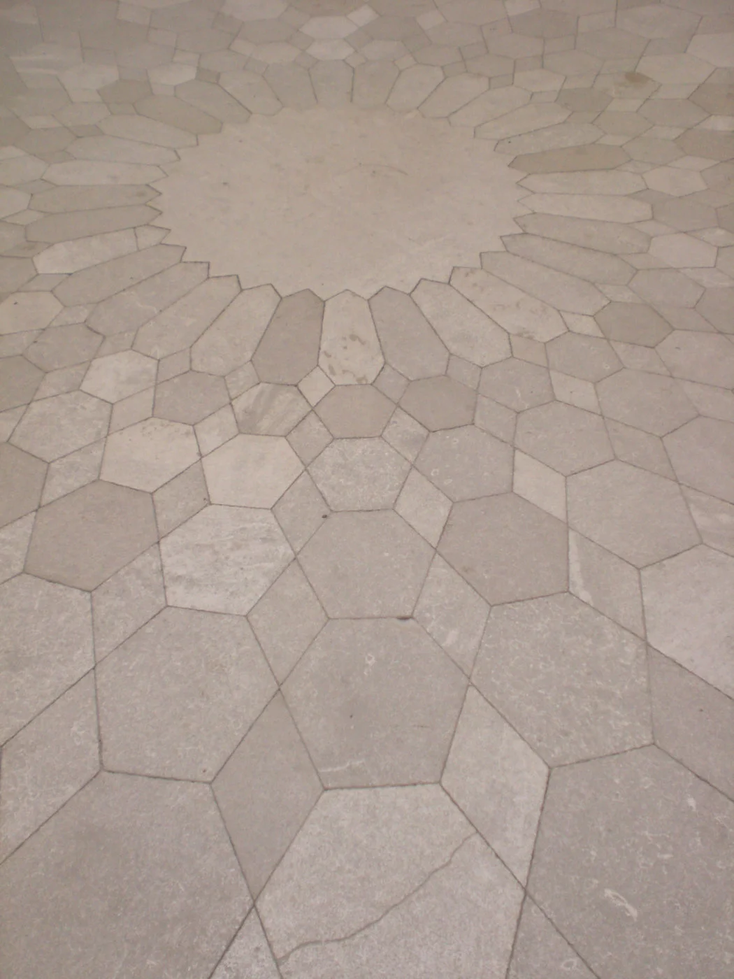 Throughout this space the walls and dome are ornamented with elegant plasterwork, which is all modelled in shallow relief, and so despite there being a lot of decoration in this space, it does not seem overpowering. The floor also has the most subtle decoration consisting of a complex pattern which is pieced together from the same coloured stone.