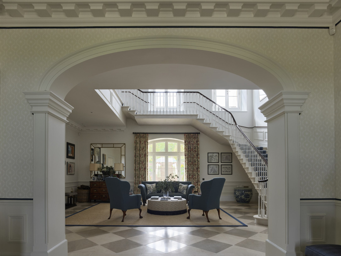 The result bears witness to a highly considered programme of work. It reflects the beauty of building in a traditional style, yet incorporates a contemporary version of family life, expressed in a fluid, open interior plan and generous bedroom spaces. The design of the house was informed by a full survey of local historic architecture—both polite and vernacular—and the typical well-ordered elevations that characterise so many of the country houses of Hampshire, from the mid-17th to early 19th century.