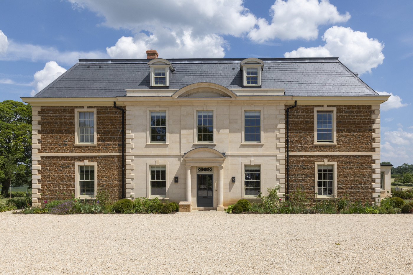 The house is an assured and dignified composition, echoing the traditional houses of status in Northamptonshire, with all the conveniences of a fluid modern plan form and modern technology – with an emphasis on light. The house took two years to build from the granting of planning consent, and the family moved into the house in 2022; handsome and convenient, it also has all the benefits of a good set of existing outbuildings.